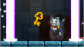 - クリックする度にイラストが切り替わる扉の仕掛け。扉に付いている顔がヒントだよ。