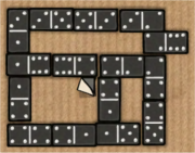 - ドミノのパズルは色の濃い部分にドミノを敷き詰めていくようになっていて、「右上の6の所に6のドミノを置く」からスタートして「同じ数字同士が隣接する」ようにドミノを並べていこう。『ヒント図』